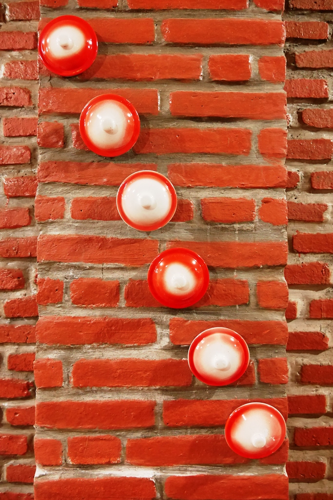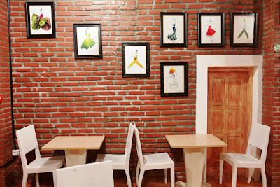 ruangannya dominan warna merah, cukup luas dan tertata rapi. Buat yang ingin makan