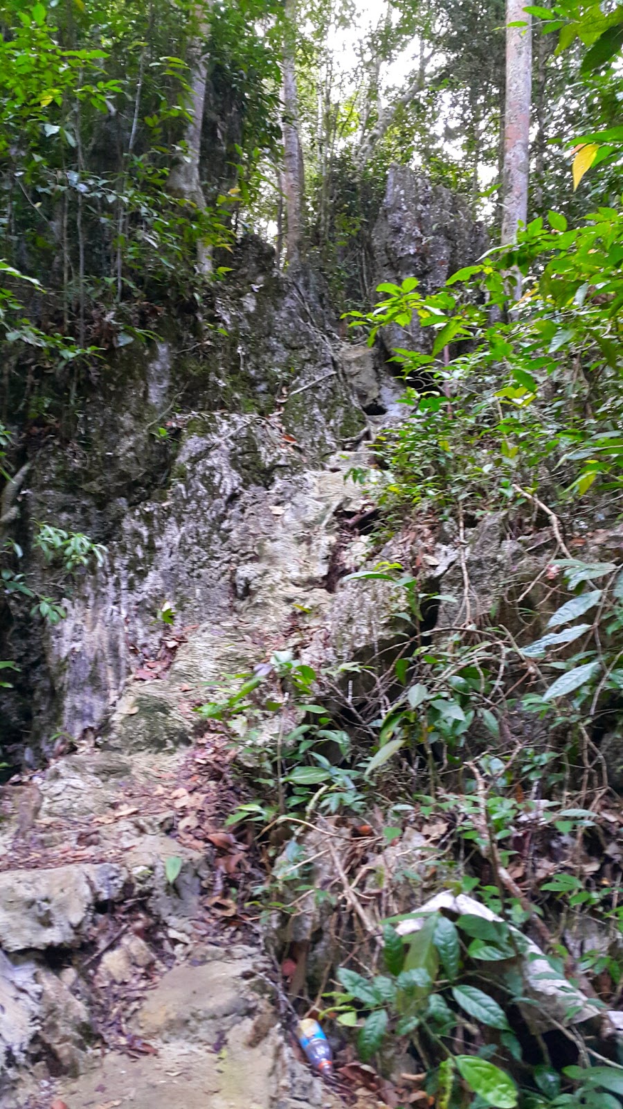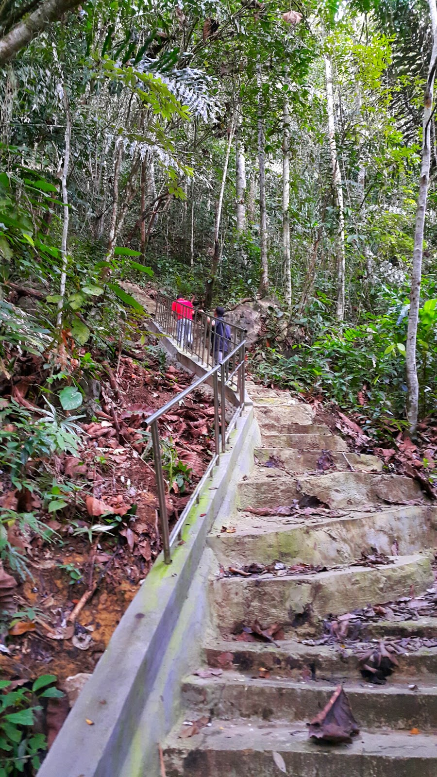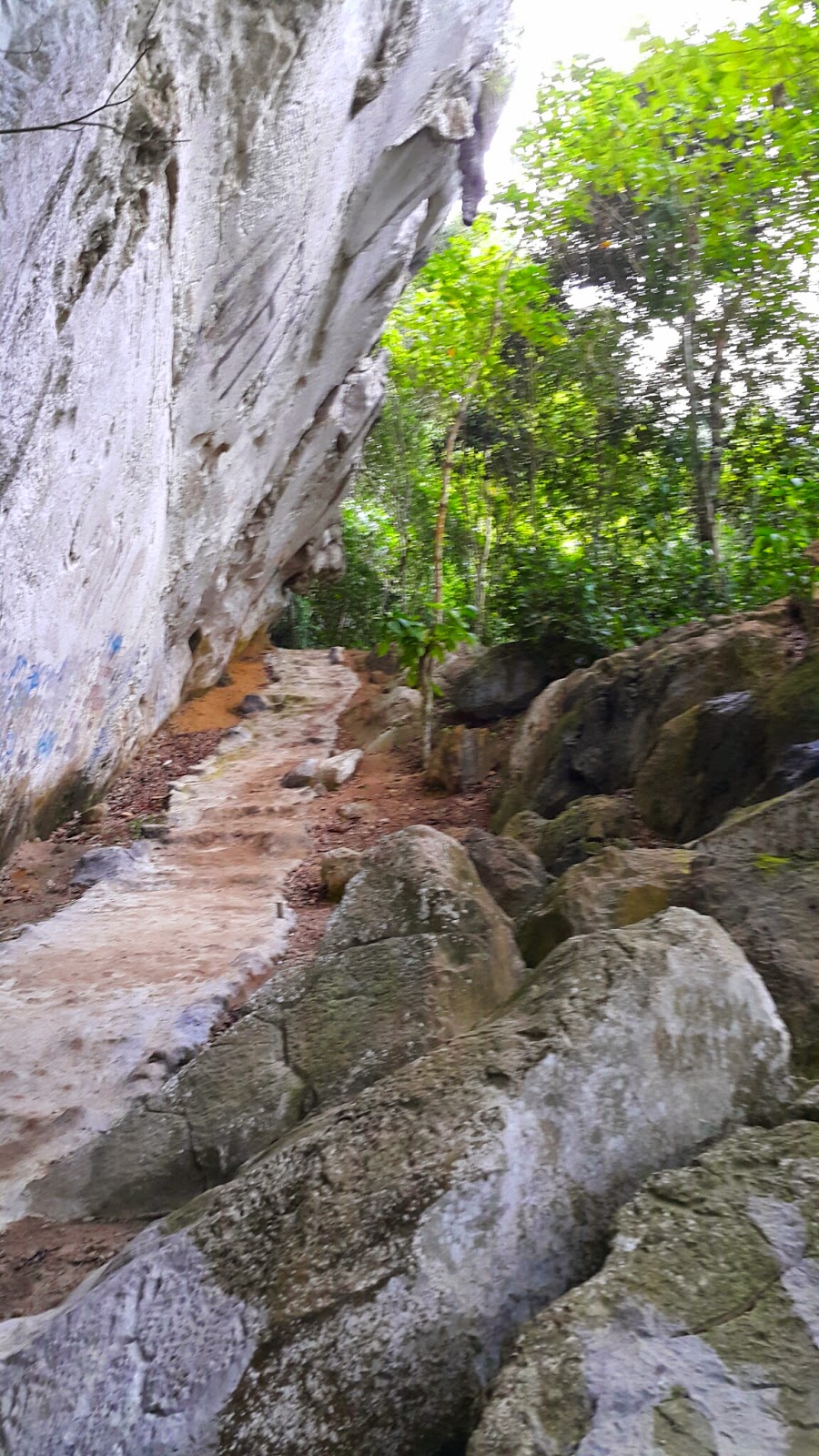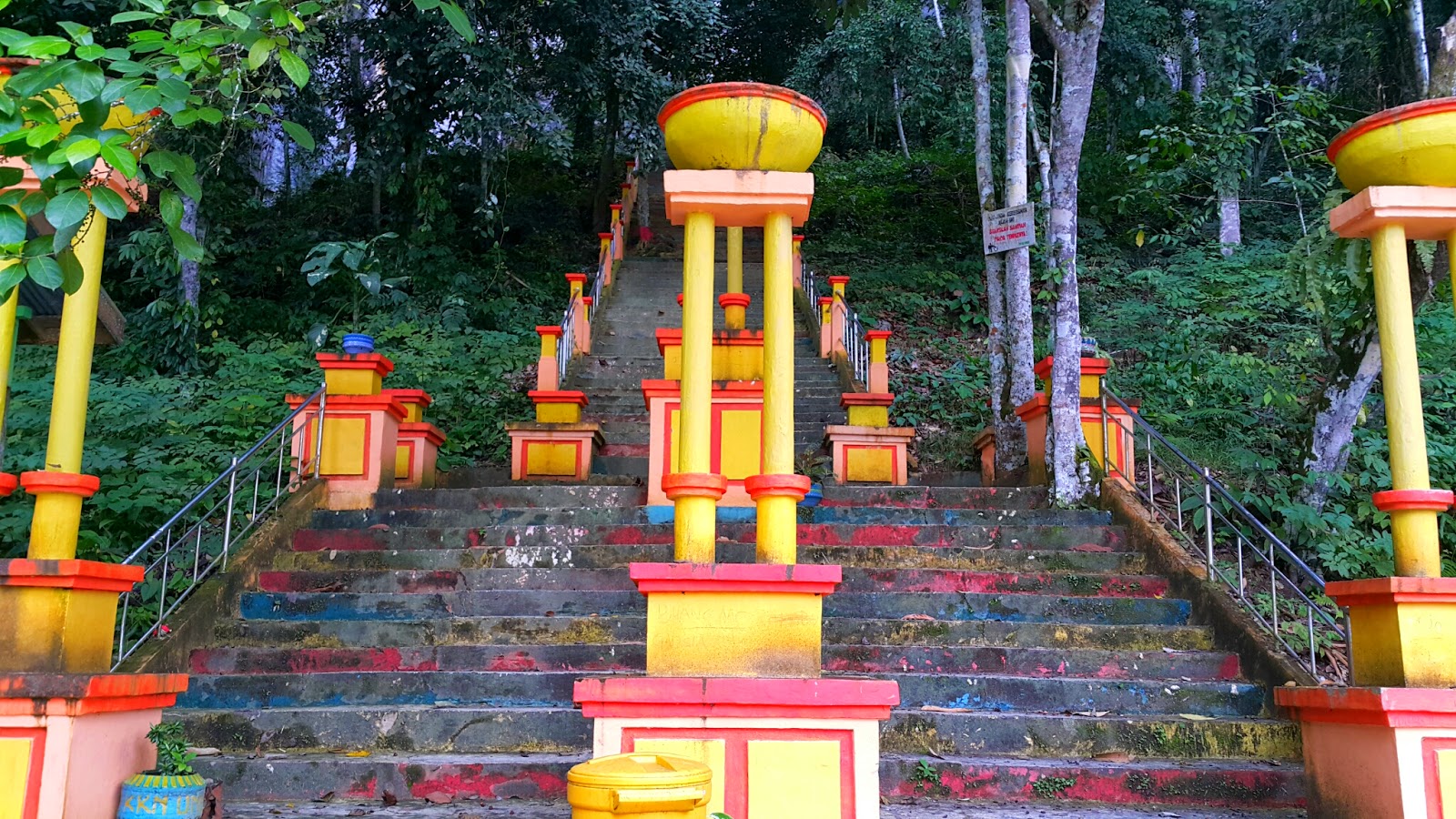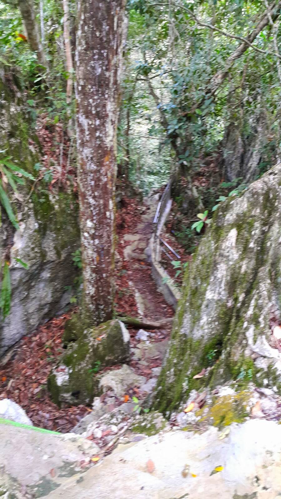 Menaiki anak tangga yang tidak beraturan, terus menanjak dan sebagian sudah diberi pegangan besi supaya memudahkan pengunjung. Terkadang memang ada yang kemiringan cukup ekstrem, tapi bocoran nya dari sekarang sebelum sampai, turun nya lebih susah dibanding naik nya hehe…