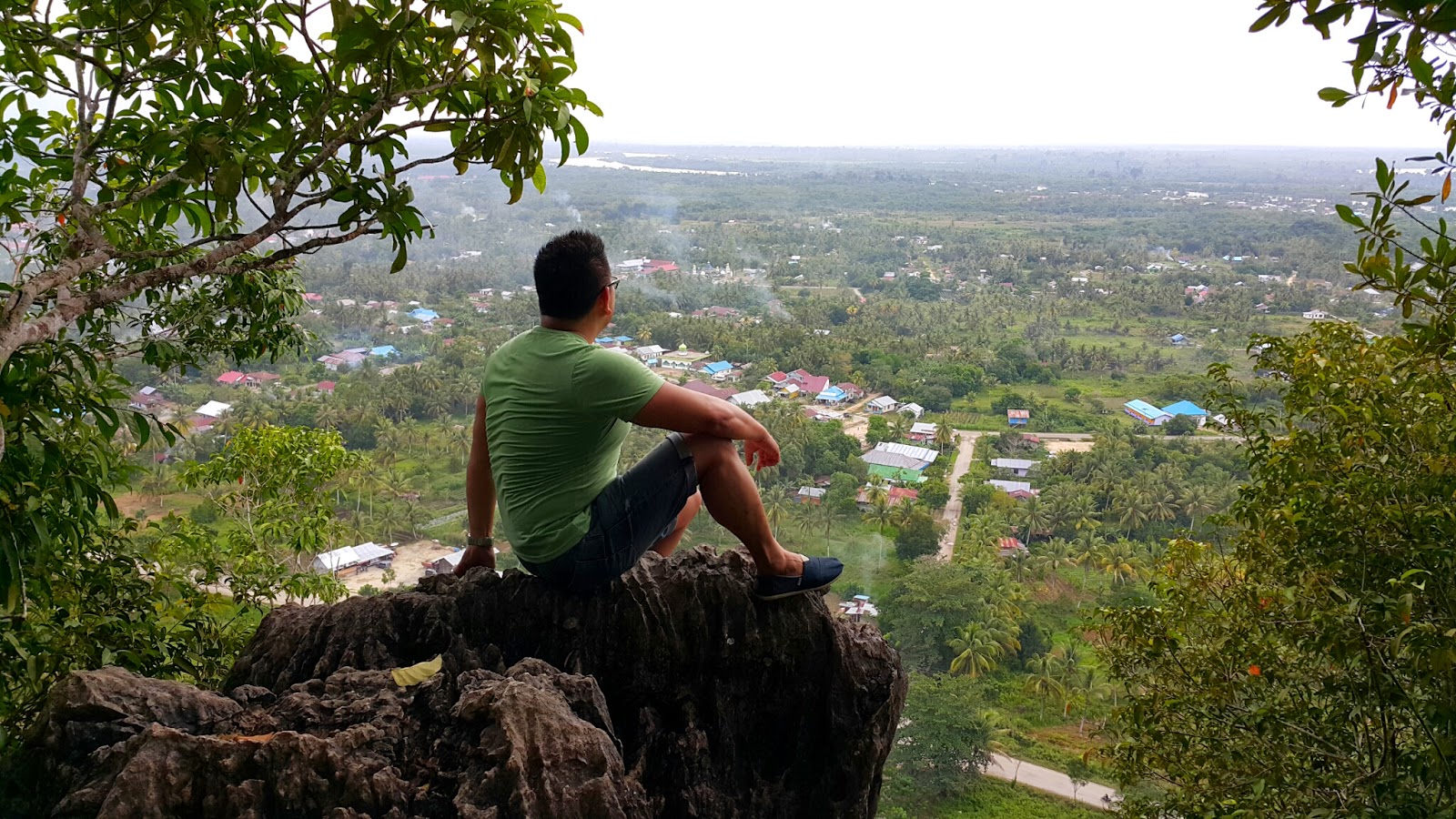 Selama perjalanan menuju puncak, di sekeliling kita hanya nampak pepohonan hutan yang masih asri dan terdengar suara burung serta beberapa bunyi bunyian khas alam. Sesekali berhenti untuk beristirahat dan mengambil napas hehe…maklum faktor umur sudah tidak bisa bohong lagi. Setelah berjalan sekitar 20 menit, sampai juga di puncak gunung. Dari ketinggian ini kita bisa melihat hamparan kota bulungan dari beberapa spot foto. Uniknya bebatuan nya tidak berwarna putih melainkan justru seperti batu cadas hitam.